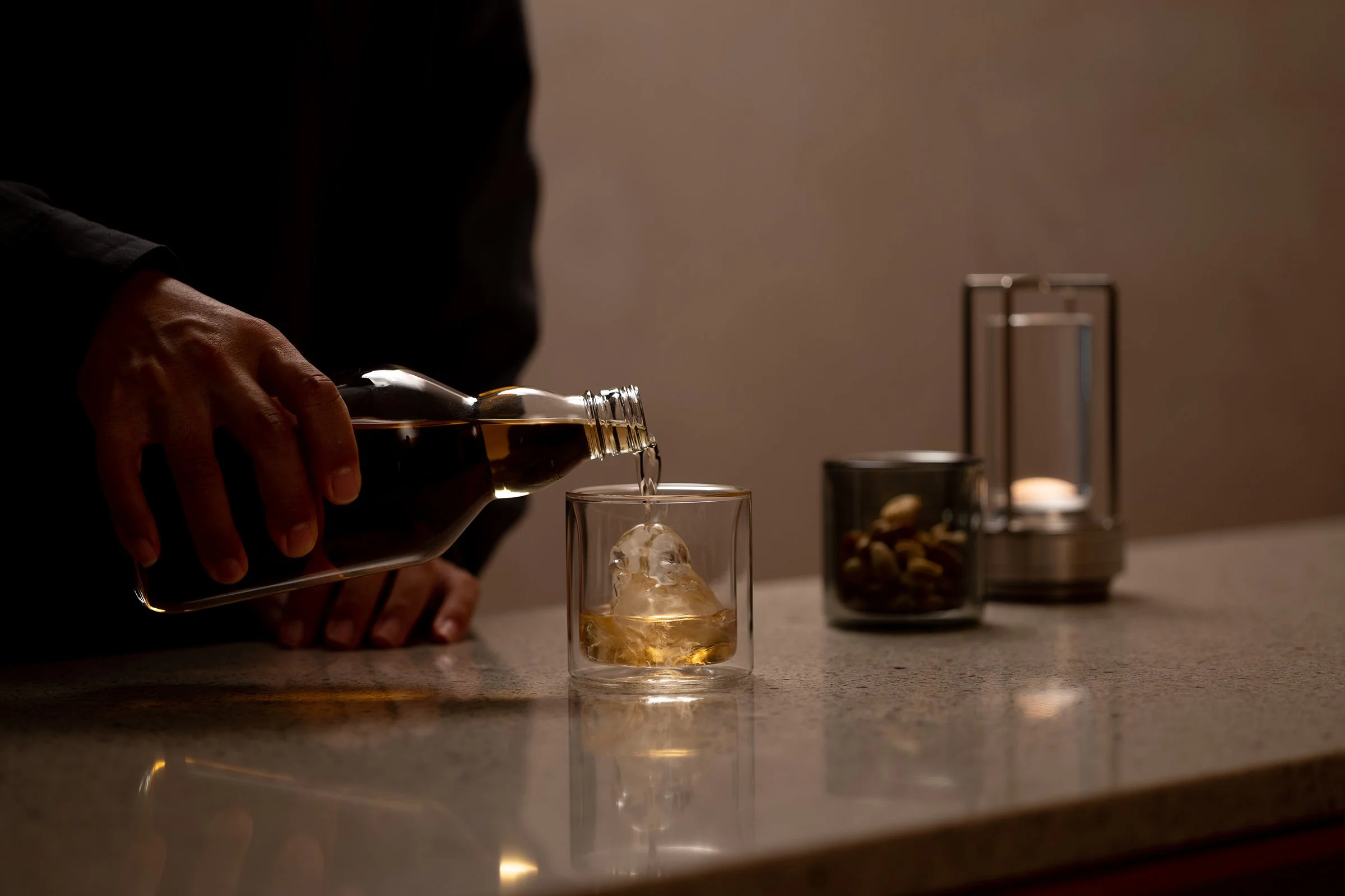 Its vertically rising silhouette with a double structure maintains its cooling and warming capabilities while enabling seamless use across more diverse scenarios than ever before. To eliminate the “bulkiness” often associated with double-walled glasses, the radius at the edge of base has been minimised to the absolute limit, both internally and externally. Furthermore, to achieve the sharp yet pleasant “mouthfeel” – the most crucial element in a glass – we have meticulously designed every detail. This incorporates innovative techniques such as a smooth curve gently sloping towards the rim and varying the thickness of the inner and outer glass walls.